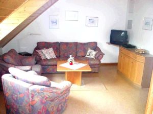 Die Dachgeschosswohnung für 4 Personen ist geräumig und hell eingerichtet, hat zwei Schlafzimmer, eine